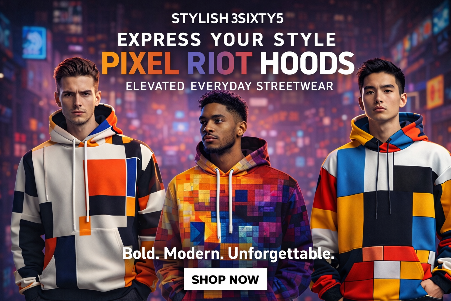 Make a bold statement with the Pixel Riot Digital Block Hooded Sweatshirt, designed for modern streetwear culture. This hoodie blends futuristic digital block graphics with everyday comfort for a standout look. Crafted for those who value style, confidence, and versatility in their wardrobe. Perfect for casual wear, layering, or elevating your urban outfit. Designed to move with you while maintaining a premium street aesthetic. A signature piece from Stylish 3Sixty5 for trend-driven individuals. Street ready, seasonless, and effortlessly stylish. Own your look with contemporary fashion that speaks attitude and edge.